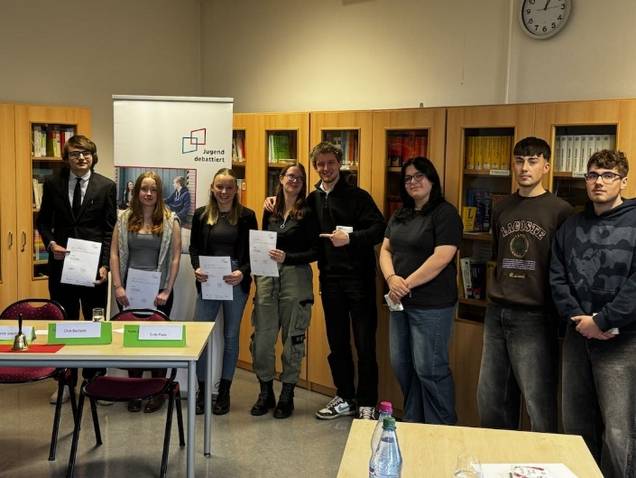 Mit der Siegerehrung und Würdigung aller Teilnehmer wurde die Veranstaltung beendet. Frau Grünewald schloss mit den Worten Helmut Schmidts: „Demokratie besteht aus Debatte und anschließender Entscheidung auf Grund der Debatte“. „Jugend debattiert“ ist ein wichtiger Beitrag zur Demokratie, zur kultivierten Auseinandersetzung und zu einem guten Miteinander.